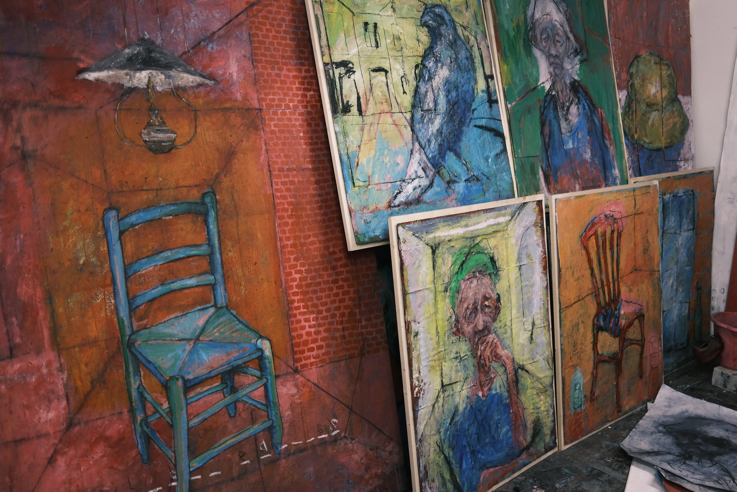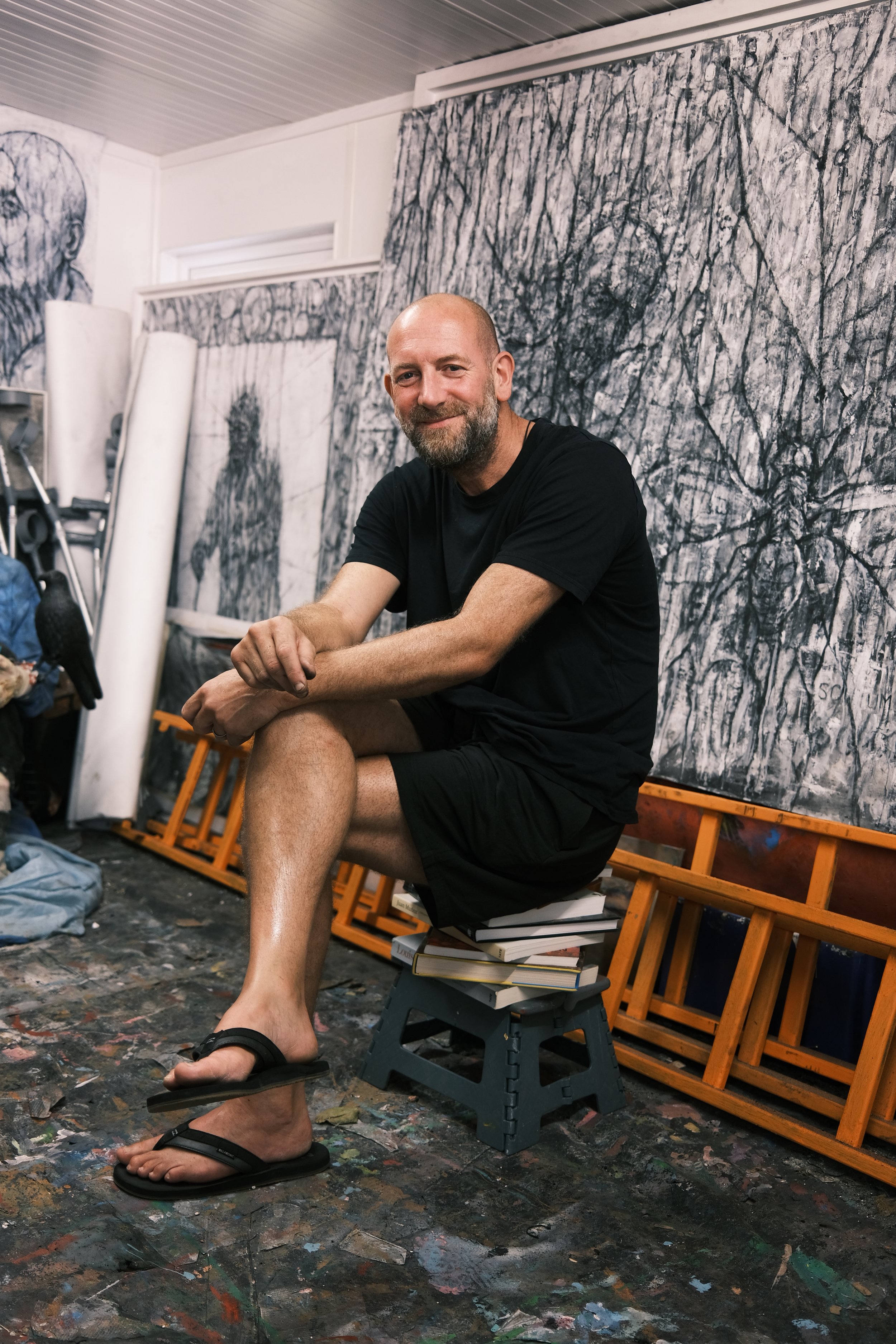 For art enthusiasts and visitors, the studio is an argosy for inspiration and the particulars of life. For David, these particulars concern his profession as a paramedic. Placing a tower of books upon a paint-splattered stool, David accommodates his stature as we begin the conversation on his creative practice.